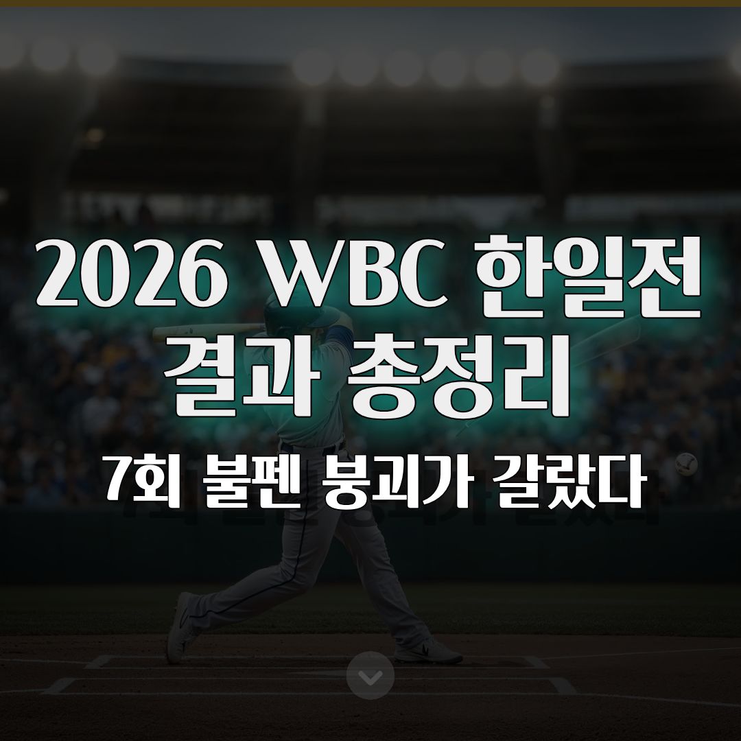 2026 WBC 한일전 결과 총정리|한국 6-8 일본, 7회 불펜 붕괴가 갈랐다 한일전은 늘 감정이 먼저 움직이는 경기입니다. 특히 WBC 무대에서 한국과 일본이 만났을 때는 단순한 조별리그 이상의 긴장감이 흐릅니다. 이번 2026년 3월 7일 도쿄돔 경기 역시 마찬가지였습니다. 한국은 체코전 11-4 대승의 흐름을 안고 일본전에 들어왔고, 일본은 오타니 쇼헤이를 앞세운 강력한 우승 후보였습니다. 객관적인 전력상 일본이 더 강하다는 평가가 많았지만, 경기 시작 직후 분위기는 오히려 한국 쪽으로 크게 기울었습니다.